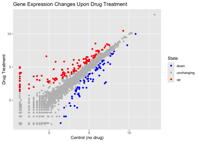 labs(title = "Gene Expression Changes Upon Drug Treatment", x = "Control (no drug)", y = "Drug Treatment")